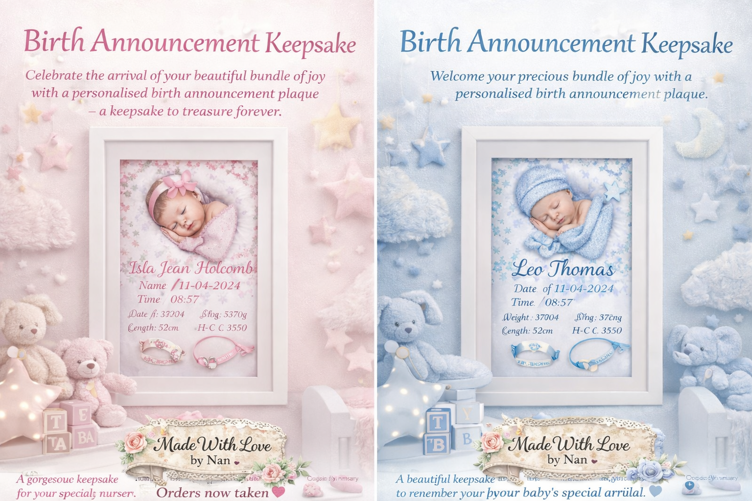 Welcome to Made with love by Nan, where every creation tells a story. Discover unique, personalised gifts crafted with care right here in Sydney, Australia. From cherished milestones to thoughtful remembrances, we pour our hearts into every piece, creating something truly special for you.